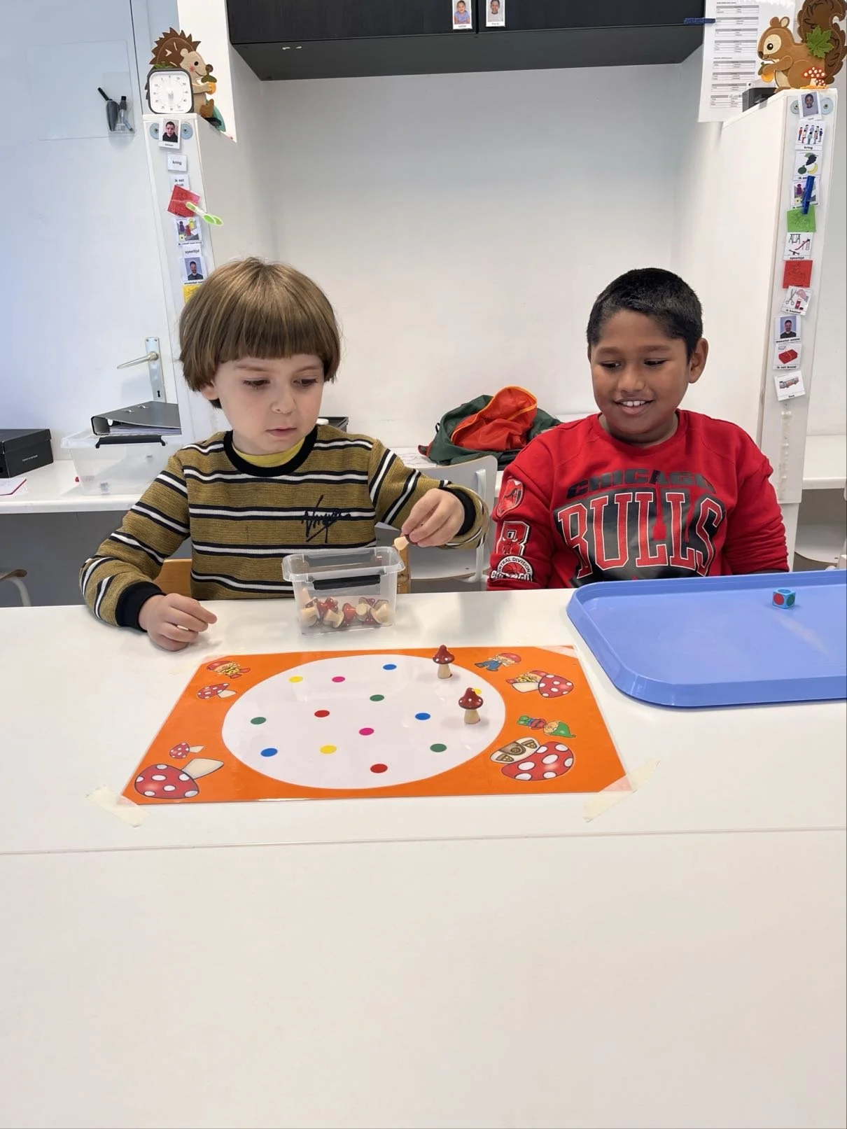 Verder genieten we ook wekelijks van het spelen van een gezelschapsspel en oefenen we onze sociale vaardigheden: zo leren we samenspelen, onze beurt afwachten, omgaan met winnen en verlies, …