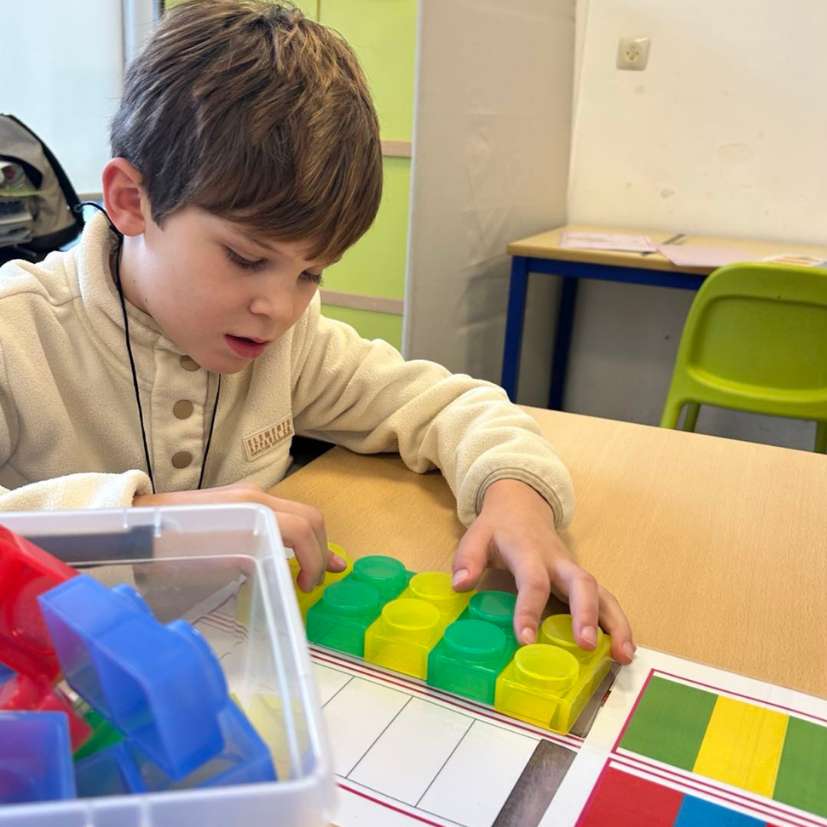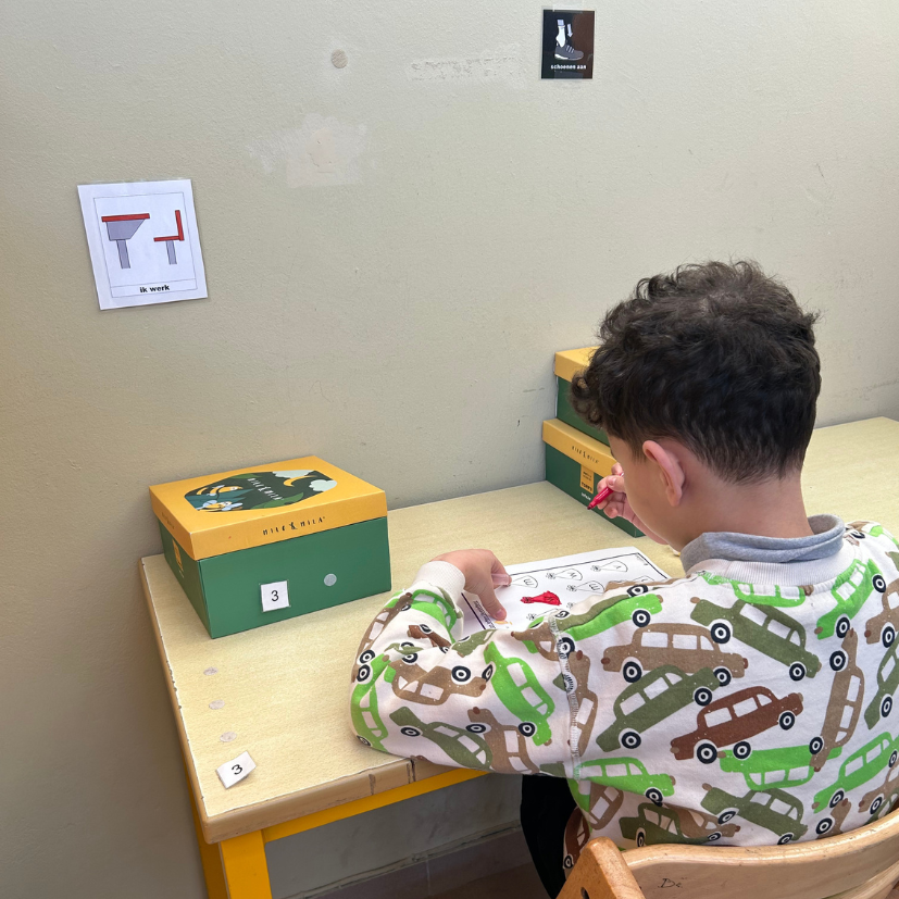 De inoefening van de aangeleerde vaardigheden gebeurt aan individuele werktafels zodat we rustig leren werken in een prikkelarme omgeving, zonder dat we afgeleid worden door wat er verder in de klas gebeurt.