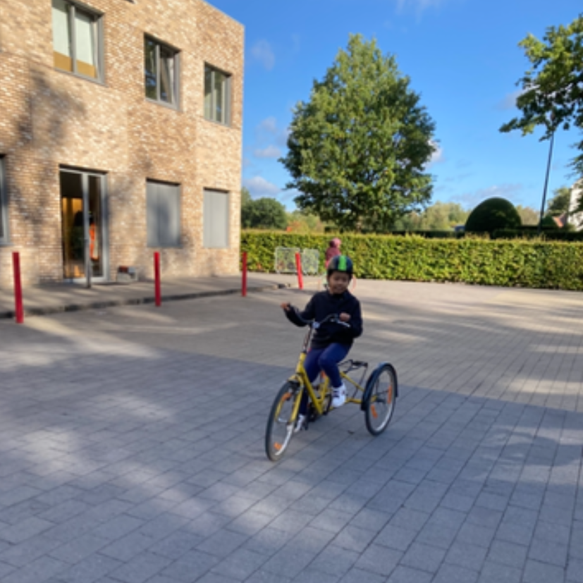 Ook de motorische ontwikkeling vinden we erg belangrijk. Een ergotherapeut ondersteunt mee de ontwikkeling van de fijne motoriek. De kinesiste begeleidt de klas mee voor fietsen en zwemmen.